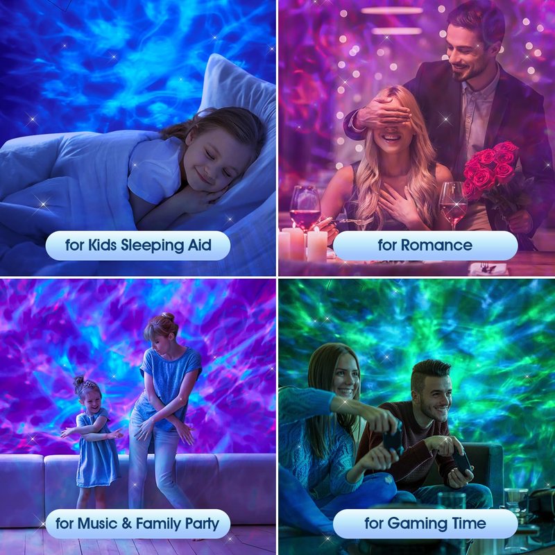 - GALAXY PROJECTOR 2.0 UPGRADED: WIDER COVERAGE+124 LIGHTING EFFECTS: The galaxy projector for bedroom & skylight projector comes with 8 colors, 4 brightness, 4 rotation speeds, providing124 different lighting effects. The galaxy projector for bedroom & galaxy projector lights for bedroom covers the entire ceiling with galaxy lights. The galaxy projector star projector & galaxy light projector transforms an ordinary bedroom into a magical wonderland, helping you and your kids fall asleep faster.