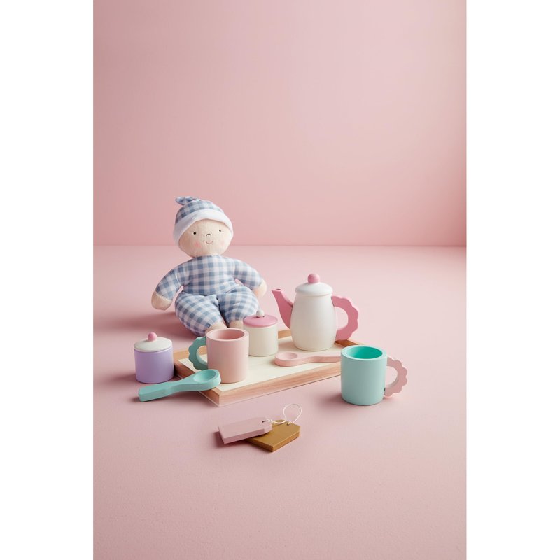 Mud Pie Kids Wood Tea Party Set; Tray: 9" X 6"