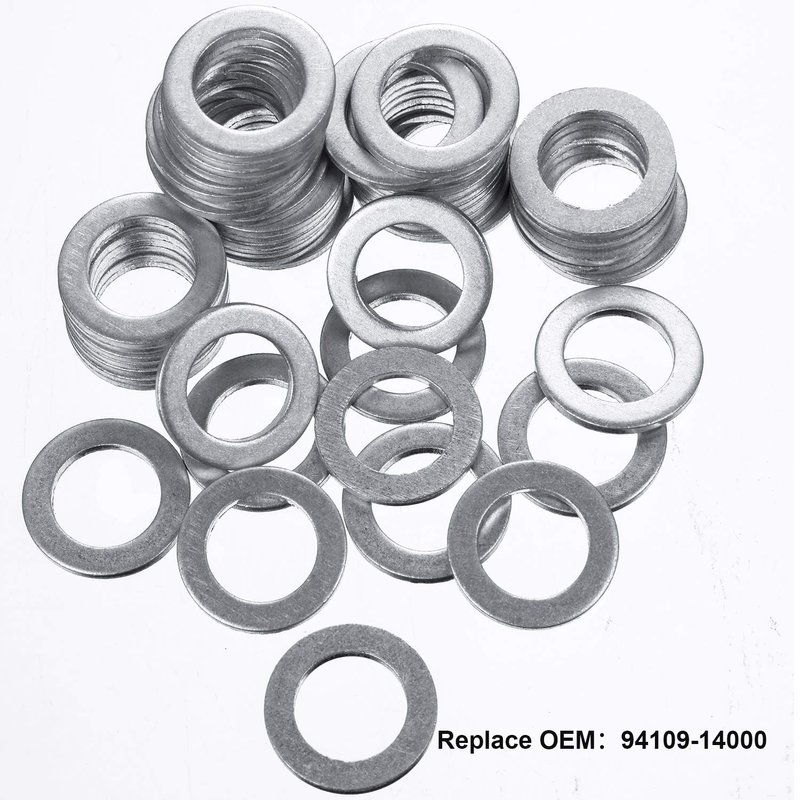 Mudder 50 Pieces Aluminum Engine Oil Drain Plug Washer Gaskets Compatible with Honda Part 94109-14000