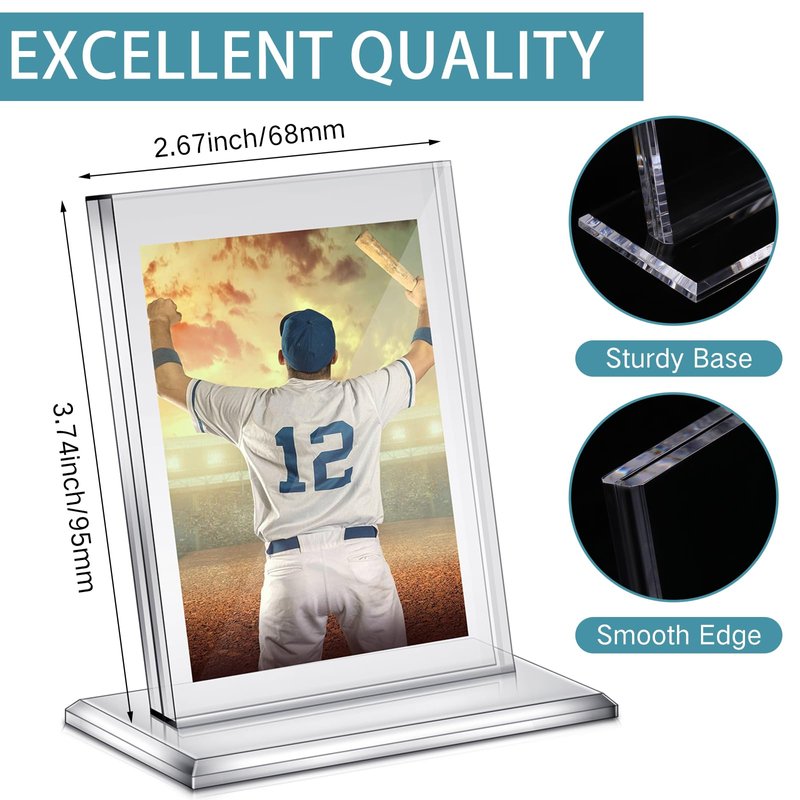 Features: This trading card display frame makes an ideal gift for friends, family, colleagues, or any sports and collection enthusiasts in your circle. It's a surprise for someone who appreciates practical yet stylish collectibles. Thanks to its versatile design, these baseball card holders can grace many settings. Be them in your living room, bedroom, bathroom, office, study, classroom, they will fit in while showcasing your favorite cards. Specifications: Material: acrylic Color: clear Size: about 2.68 x 3.74 inches/ 68 x 95 mm in inner size, 0.2 inch/ 5 mm in thickness Base: about 3.54 x 2.01 inches/ 9 x 5.1 cm Package includes: 6 x Acrylic card stands Notes: Manual measurement, please allow slight errors on size. The color may exist a slight difference due to different screen displays. Please tear off the protective film before use.