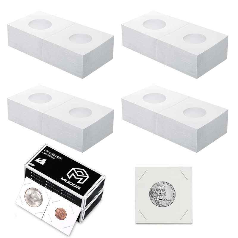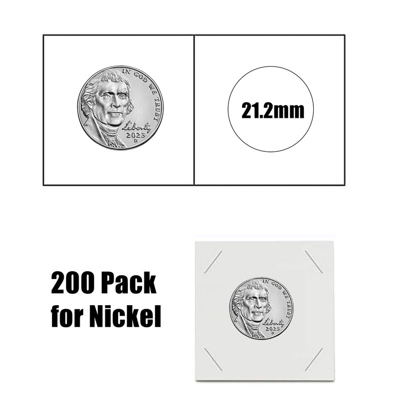 MUDOR Upgraded Premium Coin Flips for Nickel, 200 Pack Cardboard Coin Holder, Mylar Coin Flips 2x2, Paper Coin Holders