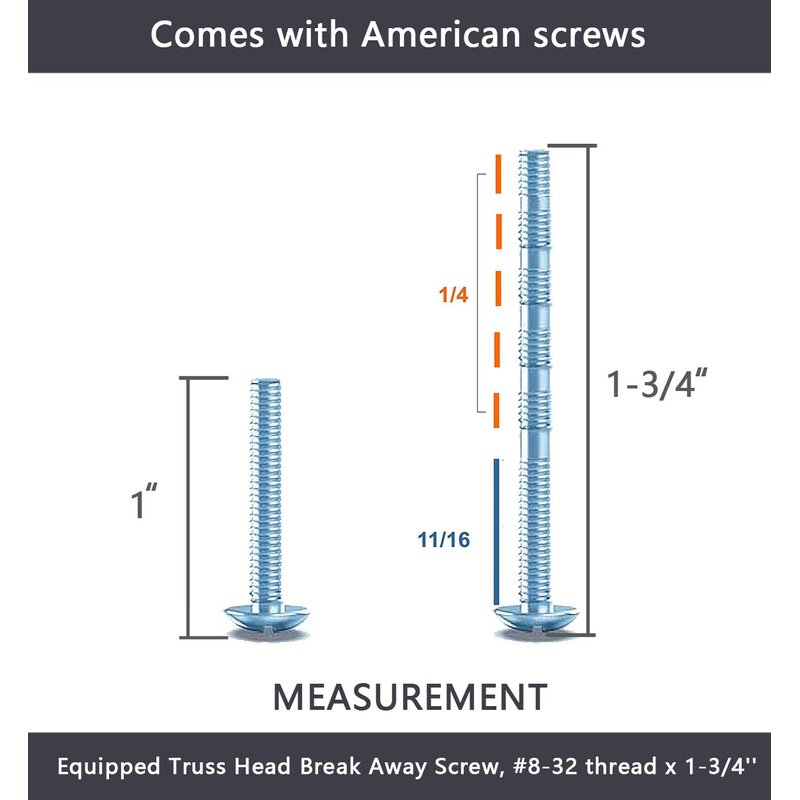 - Two sizes Screws: Most sellers offer just one size screw, while you will get 2 different size screws from us: 25mm(0.98 in) Standard screw,45mm(1.77 in)Truss Head Break Away Screw, so the drawer knobs can be used on many different drawers without a separate trip to the store to find a length that works.
