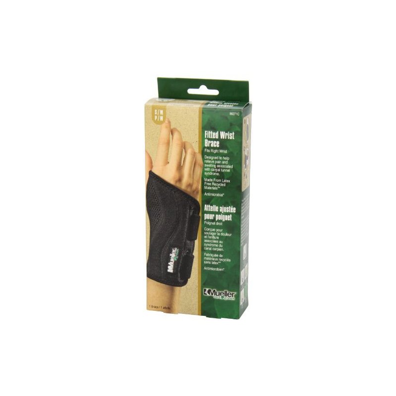 Mueller Fitted Wrist Brace Green Line Right Fitted Wrist SM/MD 5-8"