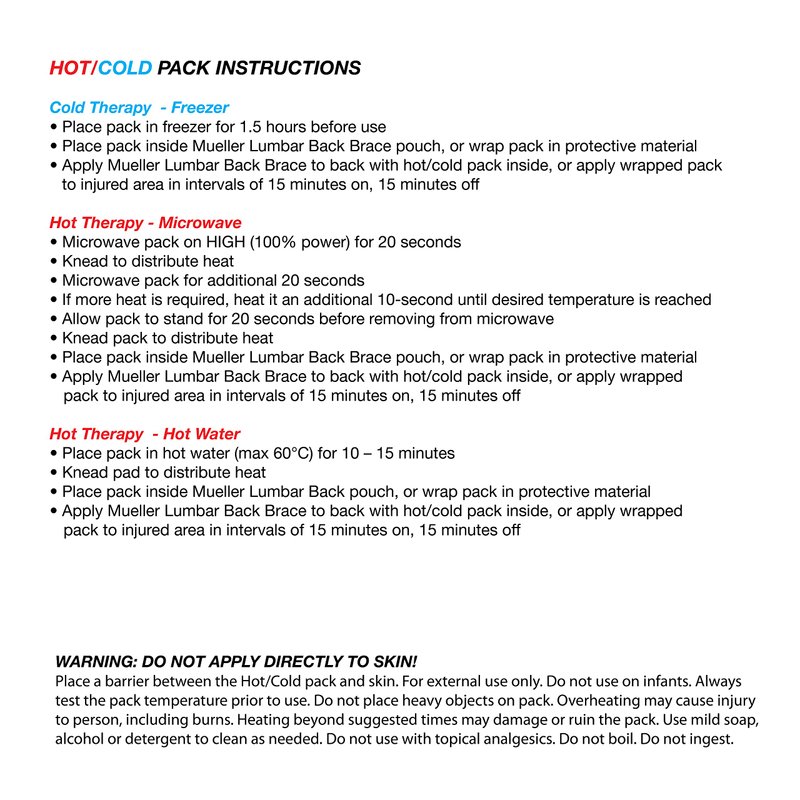 - REMOVABLE HOT/COLD PACKS: Help relieve pain and swelling.