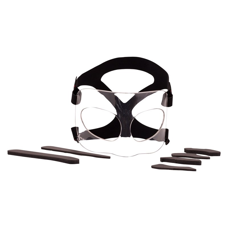 MUELLER Sports Medicine Face Guard, Nose Guard for Sports, Adjustable Face Mask with Foam Padding for Men and Women, One Size, Clear