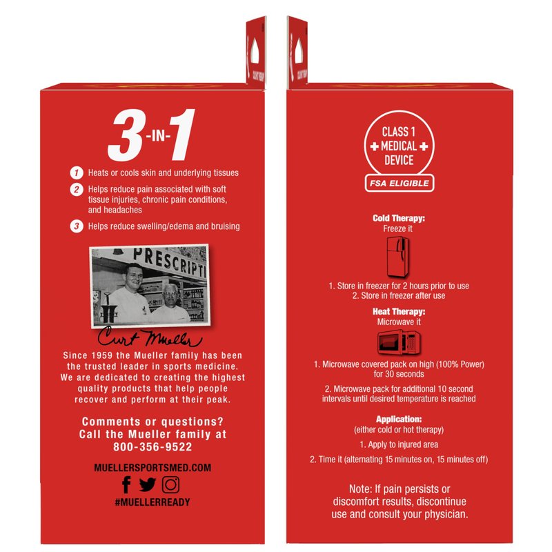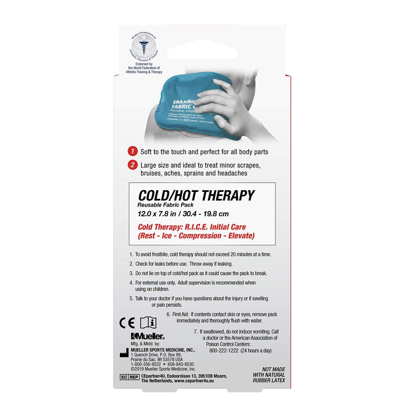 MUELLER Sports Medicine Reusable Fabric Cold/Hot Pack, Ideal for Treatment of Minor scrapes, Bruises, Aches, Sprains and Headaches, Heat/Cold Compression Therapy, 12"x7.8"