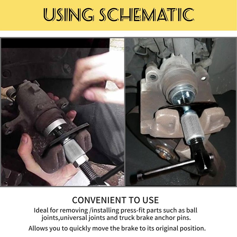 - Versatile Compatibility: The adapter board boasts a distance of approximately 22mm to 32mm from the center of the pin, making it suitable for most disc brake calipers. brake piston compressor tool compatible with both domestic and imported cars equipped with right-hand threaded pistons.