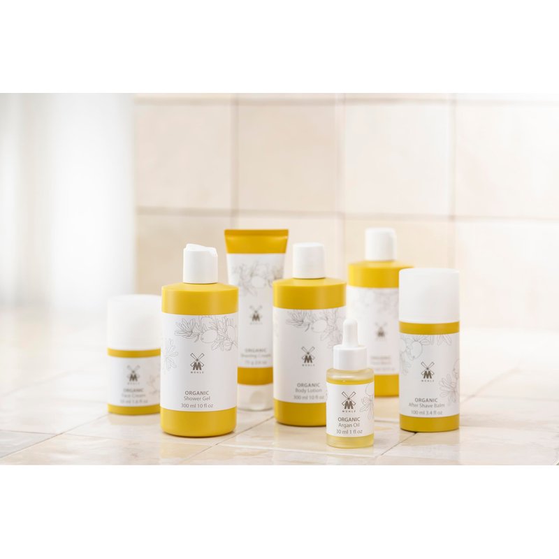 - ORGANIC: Formulated with a strategic combination of argan oil; promoting vitamin E proficiency, vegetable glycerine, wheat protein, and other essential oils to create a 100% vegan shower gel that is a BDIH Certified natural cosmetic containing no synthetic additives. Only raw herbal materials obtained from organic farming or organic wild harvesting are used in the MÜHLE ORGANIC product line.