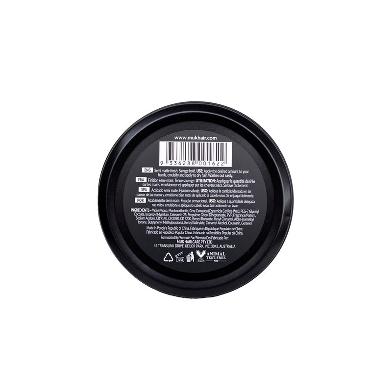 - Muk Haircare Savage Muk Semi Matte Styling Mud is Water Soluble.