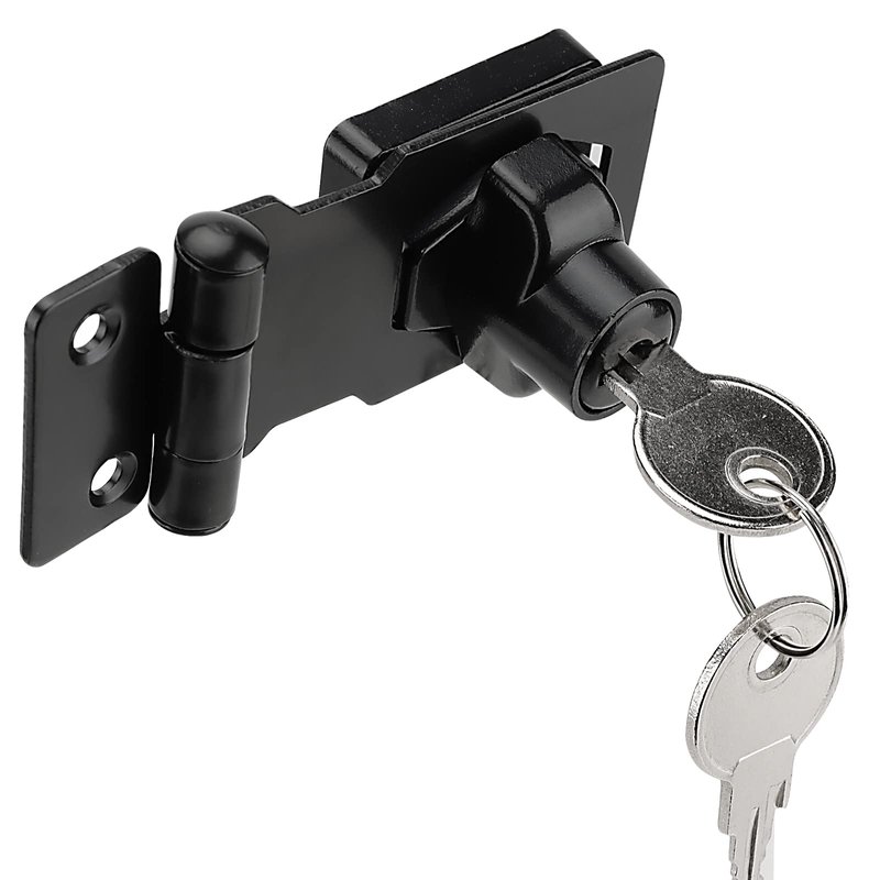 - DURABLE CONSTRUCTION - Made of high-quality zinc alloy, the twist knob keyed locking hasp comes with an electrophoretic black finish that looks very stylish while resisting rust and long lasting.