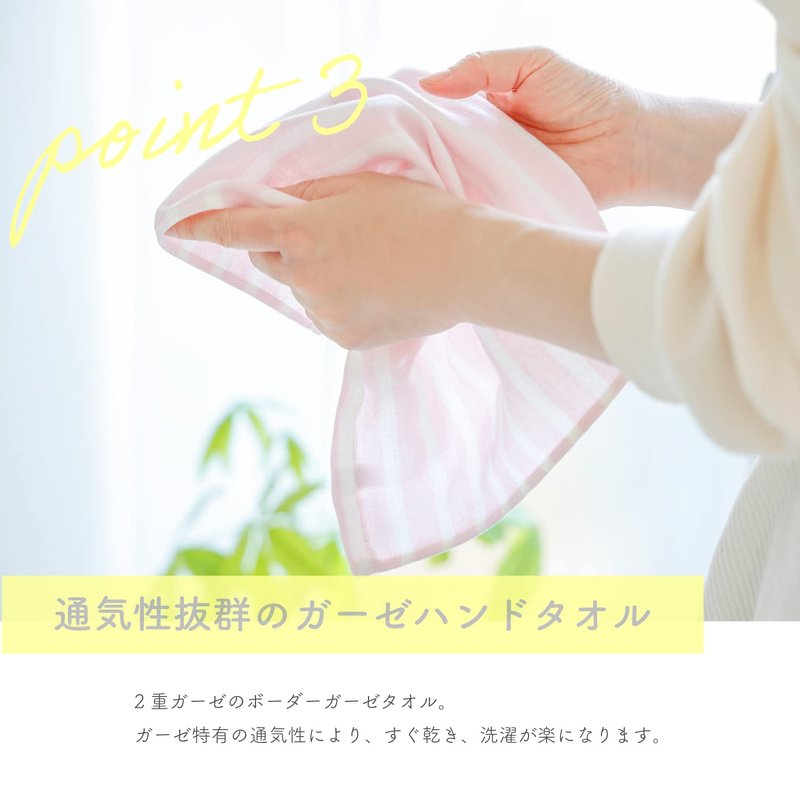 MukoTowel Double Gauze Striped, Face Towel, Senshu Towel, Thin, Made in Japan, Quick Dry, Set of 4 Towels, Pale Pink