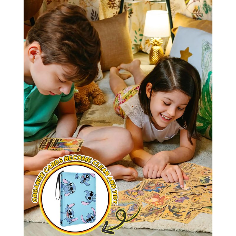 Mulafnxal 4 Pocket Card Binder 440 Double Sided Pockets - Trading Card Album Folder Collection Binder for Kids Boys Teens for Game Cards Sports Cards with Zipper Shoulder Strap,Stit