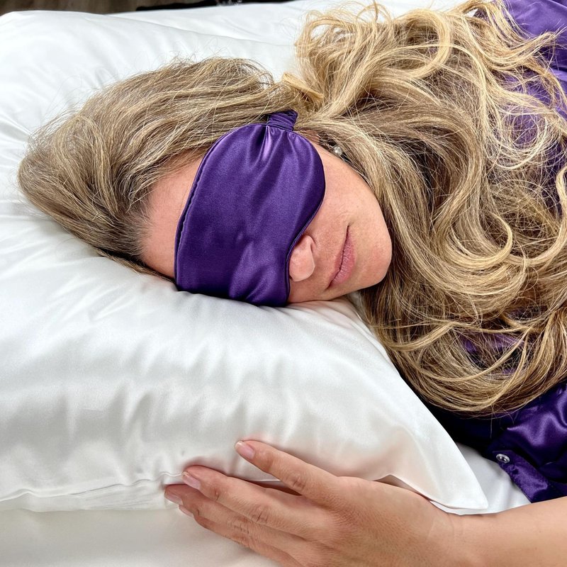 Mulberry Park - 100% Pure 22 Momme Silk Sleep Eye Mask - Luxurious, Smooth and Ultra Soft Comfortable Sleeping Mask with Silk Covered Strap, Blocks Light for Deep, Full Night's Sleep - Plum