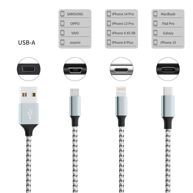 - Universal Compatibility: The Type C port: Compatible with type c supported devices. The Micro USB port: Most Android and Windows phones, tablets and many other devices.The lightning connector can be use for IOS phone.