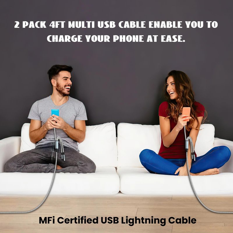 - Package: 2Pack 4ft multiple phone charging cables enable you to charge your phone at ease, not restricted by the length of cable. And it's super handy to carry, one multi charger cable meets all your demand on families, travel or work, business trips and other occasions.