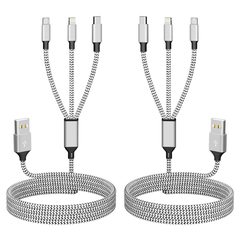 Multi Charging Cable, Nylon Braided 3 in 1 Universal Phone Charger Fast Charging with USB C/Micro USB/Lightning Port, Compatible with Most iPhones&iPads Cell Phones (2 Pack)
