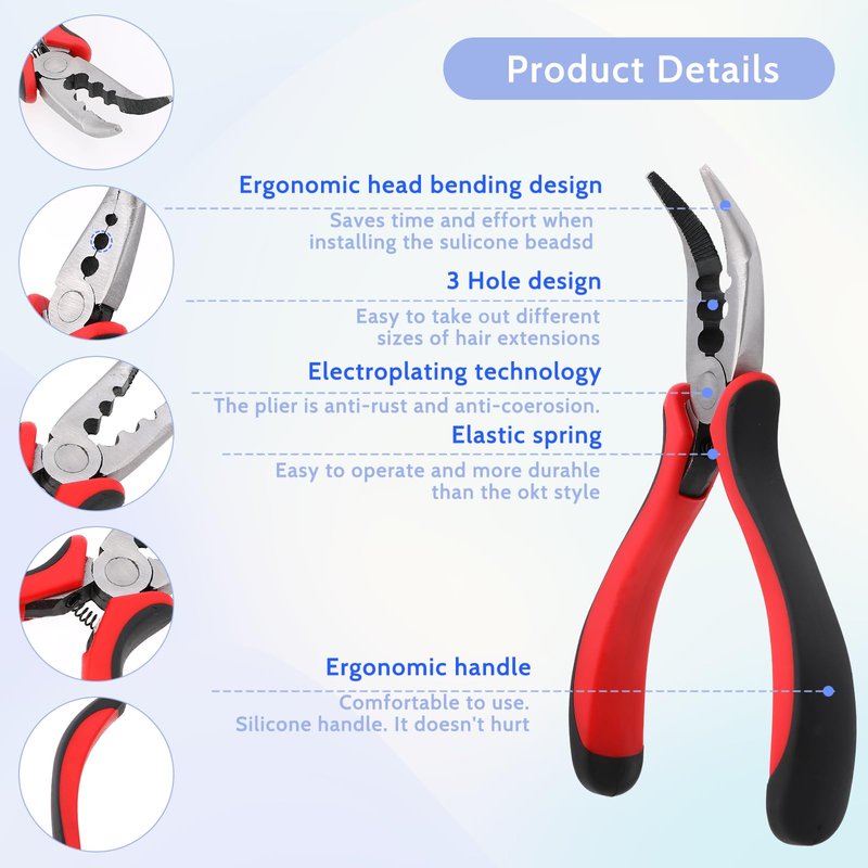 - Quality Material: Crafted from carbon steel with PVC rubber-coated handles, these mini hair extension pliers are not only aesthetically pleasing but also corrosion-resistant.