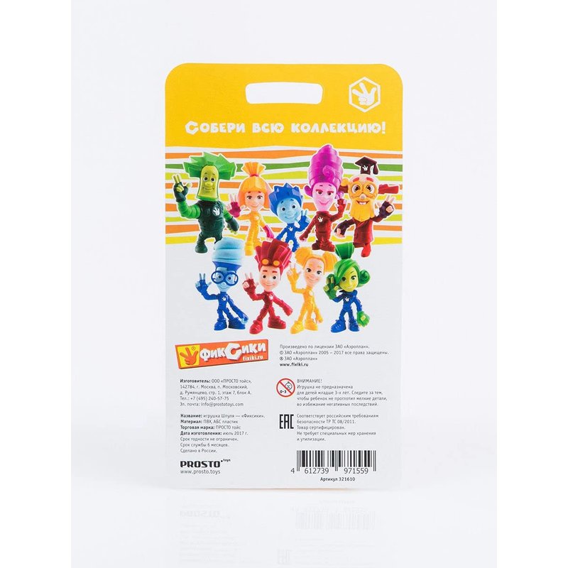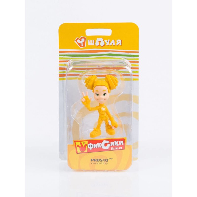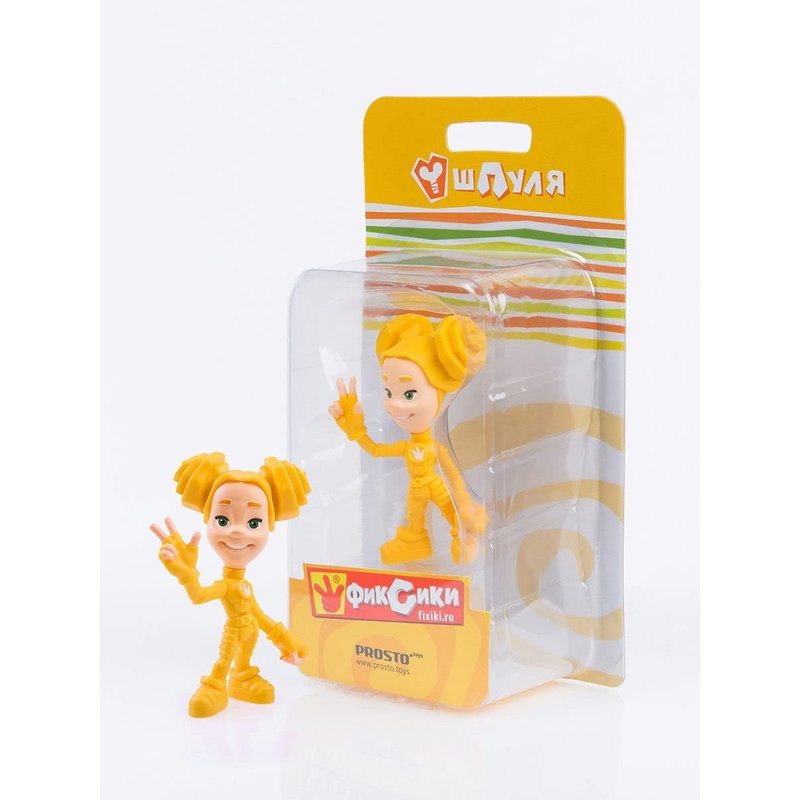 Shpulya is a fixie girl with a slender build, yellow color and a light disposition. She has light yellow skin, large green eyes, black eyelashes, and bright yellow hair styled in curls. She wears a brownish-yellow three-quarter-sleeve jumpsuit with a fixie sign on the chest and green circles on the knees. The shoes are the same color. On her belt she has a light brown belt with a yellow buckle, and light green mittens on her hands. Camouflage - screw-wing of the German type. The spool is the tallest in the class (almost as tall as Papus) and very strong physically (he can lift his entire class). She likes to help other fixies, they say about her - "The soul of our class." In the event that a group of fixies begins to solve some joint problem and they fail, the Spool inspires everyone and helps to lift their spirits and start solving the problem again. At the same time, she is very trusting and naive. Spoolie's favorite phrase is "Lovely". Type figurine Series PROSTO toys Fixies Toy height, cm eight Material PVC (polyvinyl chloride) Figurine theme Cartoon characters vendor code 321610 Manufacturer country Russia Package blister Colour Yellow Package size (Length x Width x Height), cm 19x10x6 Minimum age of a child From 3 years Character Fixies Gender of the child Unisex Maximum child age Under 18 Type of child figurine static