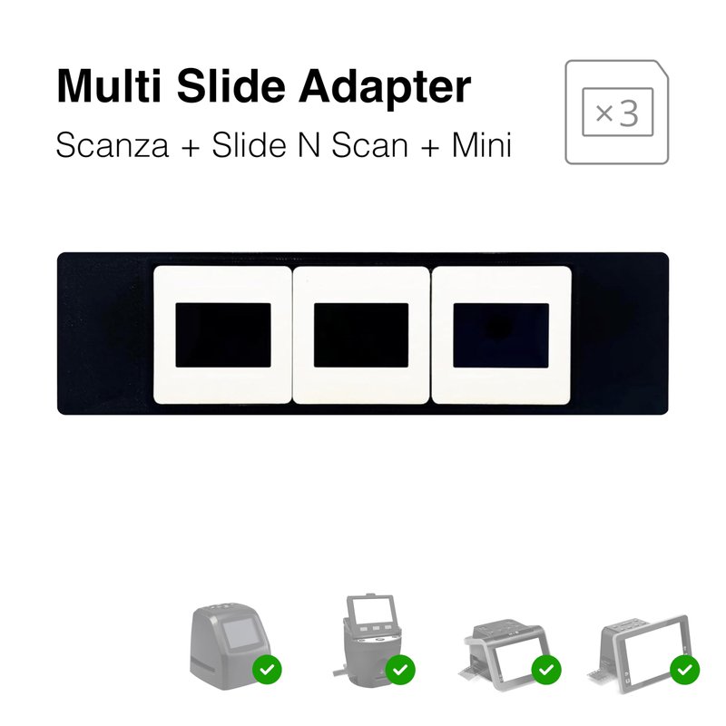 Preserve your cherished memories with ease using this 50mm Multi-Slide Adapter, specially designed for Slide N SCAN and Scanza scanners. This precision adapter allows you to quickly scan three film slides in one quick batch, significantly speeding up your digitization process while ensuring high-quality results. Whether you're a photographer, archivist, or simply looking to relive old memories, this adapter offers a seamless scanning experience.