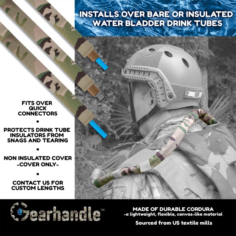 Conceal your insulated or non insulated hydration pack drink tube with a cover – sleeve. Compatible with Camelbak, Osprey, Geigerrig, Platypus, Hydrapak, Source or any Hydration pack drink tube. The Cordura cover is great for concealing your drink tube. For insulated drink tubes, the Cordura covers will help prevent snags from the outdoors. These tube covers are great for matching your Military tactical packs, Paintball, Airsoft, and hunting vests. ******* For maximum drink tube insulation, we recommend checking out our insulated hose covers.