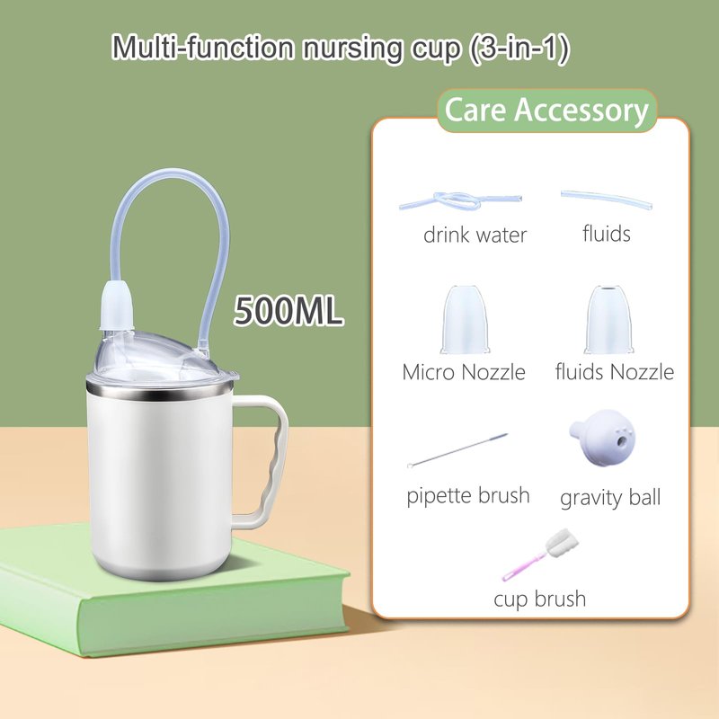 Multi-functional nursing cup Features:① Multi-functional nursing cup can be fluid, can be bed drinking, replacement of the suction can be used as a micro-anti-choking cup, replacement of the ordinary lid can be used as a daily cup, ② cup body has a capacity scale display, can be accurately feeding. ③Adjust the angle of the lid according to the needs of use.4Easy to use with one hand. It can be used even with shaky hands.
