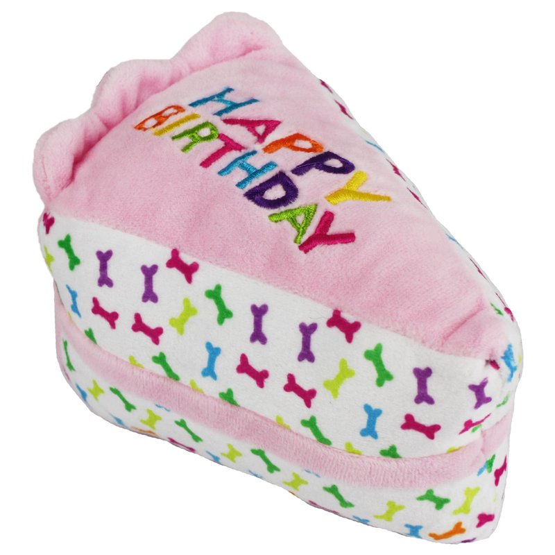 All dogs should have a special birthday! Celebrate your precious pup's special day with this colorful slice of birthday cake plush toy.