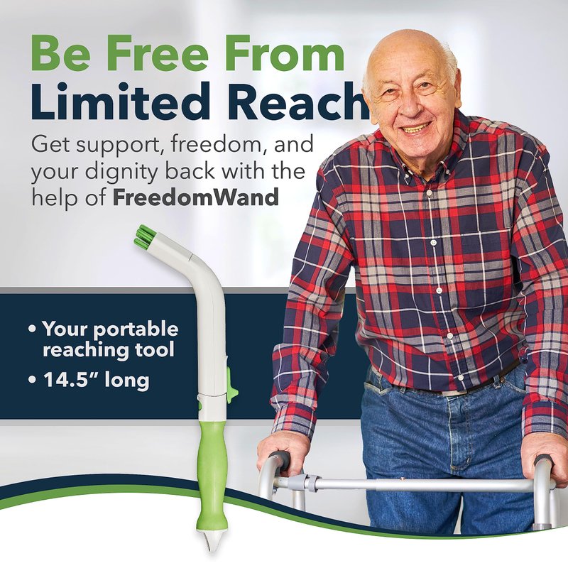 Wiping your butt shouldn’t be a pain in the butt! Freedom Wand is a personal hygiene assistant that allows you to clean yourself after using the toilet and reach hard-to-reach areas of your body independently, even with range of motion limitation. Unlike other brands that can only hold tissue, FreedomWand can also hold other personal hygiene products, such as loofahs, razors, wipes for toilets, and ointment pads. Our kits are available in three lengths. First is the FreedomWand Compact Kit, which is 14.5” long and does not come with an extension. The FreedomWand Master Kit is 20” and comes with one extension, while the FreedomWand Ultimate Kit is 25.5” and comes two extensions and a strap for holding leverage. Additional 4-inch Freedom Wand Extensions and the strap are also available for purchase. FreedomWand has a superior 4-prong grip, so you don’t have to worry about your self care products getting detached. FreedomWand allows you to extend your reach to hard-to-reach areas and crevices comfortably. Additionally, it features a one-touch slide bar to release or hold products with minimal effort. Each FreedomWand Toilet Aid Kit comes with a FreedomWand head, handle, cloth carrying case, and instruction sheet. It also disassembles and stores with the grippers pulled in and can be kept discreetly in its carrying bag when not in use. FreedomWand is travel-friendly, so you can bring them wherever you go. FreedomWand is hygienic and easy to clean – wash it with soap and water while washing your hands. It also features a rinse hole, where you can clean the wiping wand internally if needed. If you’re suffering from spinal/back injuries, arthritis, carpal tunnel, stroke, obesity, or have a limited range of motion, FreedomWand can help you regain independence and dignity. FreedomWand is a 100% woman owned company, and all our kits are proudly made in the USA.
