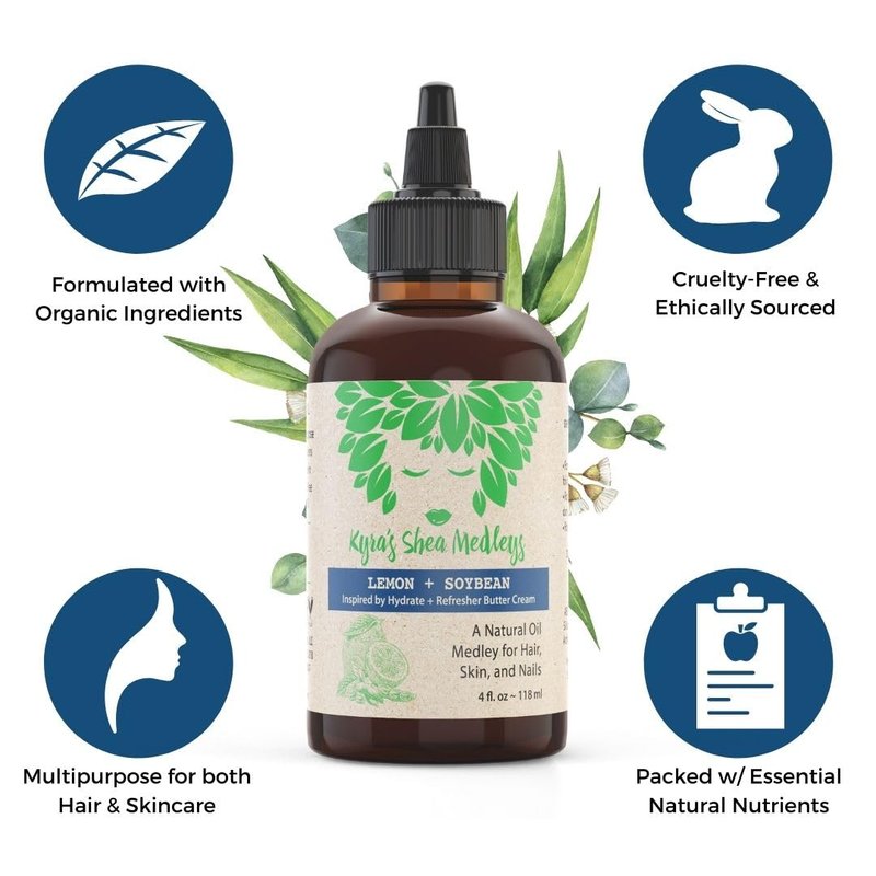 Multiuse Lemon + Soybean Oil Medley for Face, Body, and Hair - Natural Soya Bean Oil, Shea Nut Oil, Lemon Essential Oil, and Vitamin E - Seals in Moisture for Dry Skin, Scalp, & Nails - 2 oz