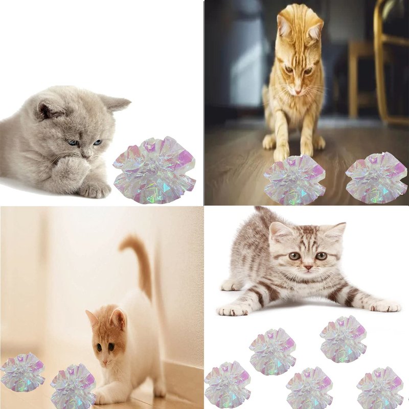 - original Mylar cat ball: The interactive cat toy have outstanding appearance, shiny and bright, tightly catch kitten¡¯s eyesight. The size is about 5.5cm in diameter, perfectly suit for cat paw. The cat ball send crisp voice when touch it, highly entertainment for cat. Let¡¯s lovely cat crazy with it and enjoy the wonderful hours.