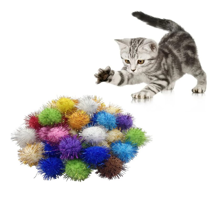 - Funny sparkle balls: The sparkle ball measure approx 3.5cm in diameter, it's look like puffer ball with sprayd tinsel, soft, beautiful and touch comfotable. Super fun for lovely cat chase ball all over the house, Color random.