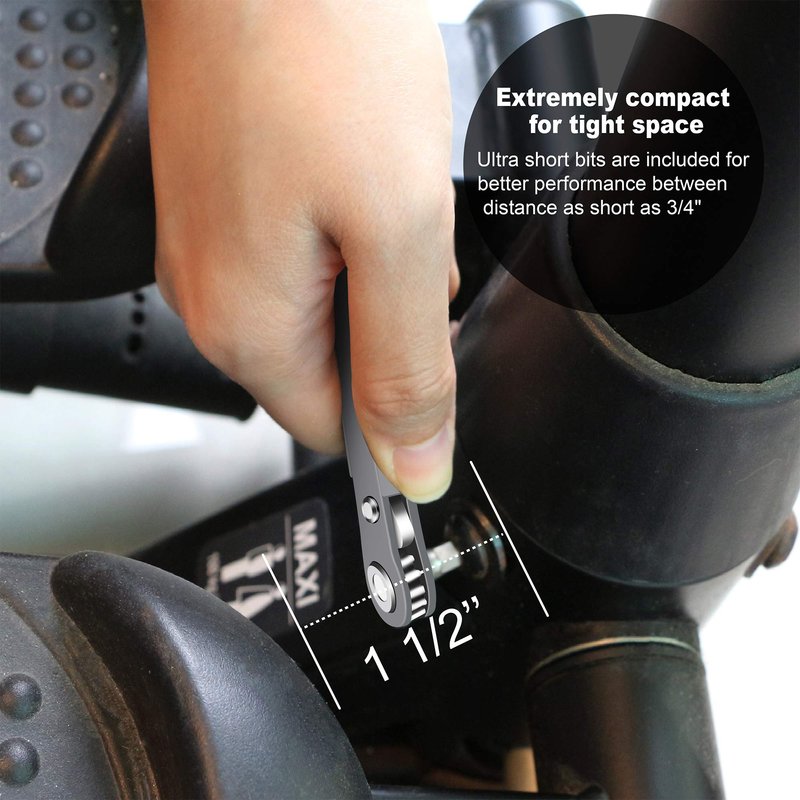 This handy right angled screwdriver set with ultra-compact size, convenient ratcheting mechanism and easily-toggled direction selection switch, makes it easy to get at hard to reach enclosed areas (as tight as 7/8” wide) behind, between or underneath barriers, without any frustration or fumbling. Designed for quick and easy assembly & disassembly & repair use