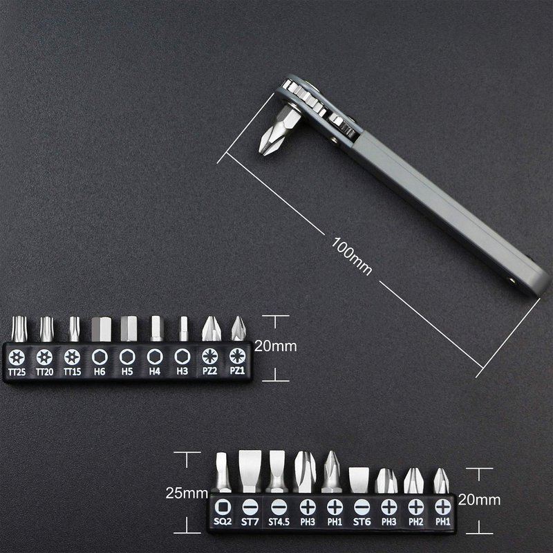 - ▲ DELICATE MECHANISM: This multi tip right angled combination screwdriver set is powered with a 16-teeth reversible ratchet system to ensure smooth ratcheting in both directions and enable precision adjustment; and the miniature pocket size close-quarters bit driver has magnetic like clip inside the hex bit holder help keep the inserted bit tight in position