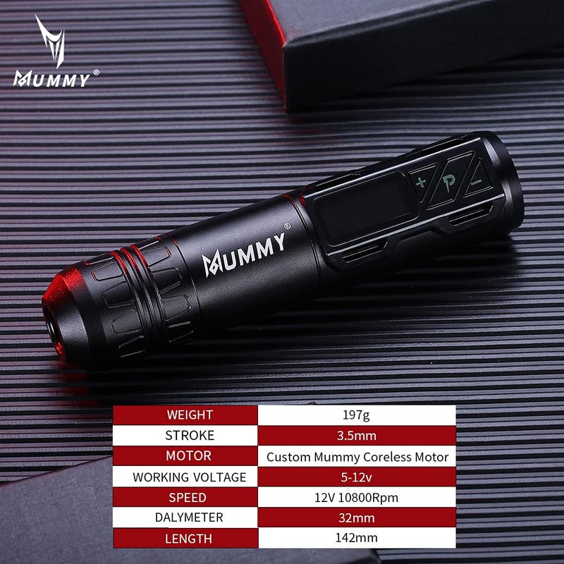 - TATTOO MACHINE MOTOR-12V 10800RMP Mummy Customized Swiss Motor-With an Ultra Power No-Snag Motor that Allows for Exceptional Power and Durability and Glides Through the Skin Without Snagging or Pulling, It Gives the Machine Great Balance Between Lining and Shading, and is Perfect for Demanding Lining and Color Packing; Starting Voltage:5V;Operating Voltage:5-12V