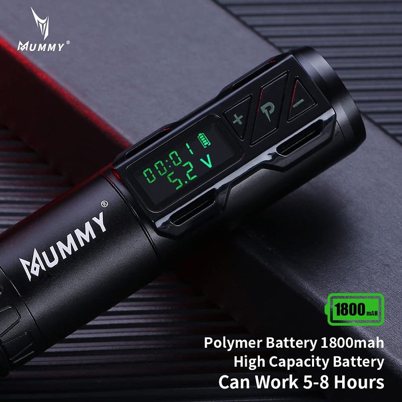 Mummy Tattoo Rotary Battery Pen Tattoo Cartridge Machine Rotary Pen with 1800mAh Power Coreless Motor Digital LED Display Tattoo Equipment Supply(black)