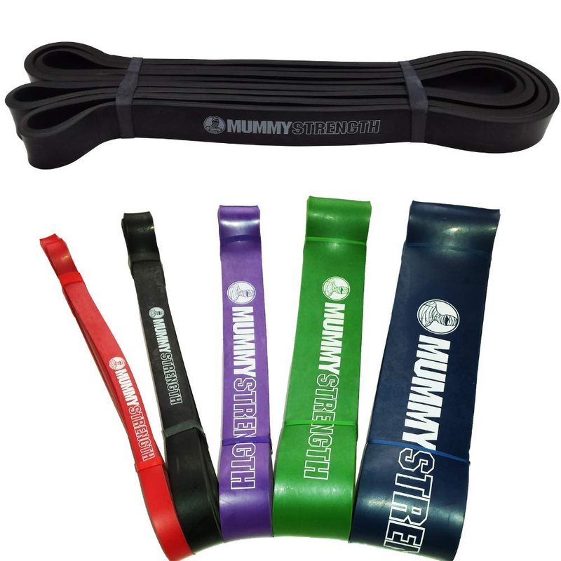MummyStrength Resistance Bands for Men and Women. The Best Stretch Band for Pull Up Exercise and Powerlifting. Works with Any Pull Up Bar or Station. Single Band. Workout Guide Included (Black)
