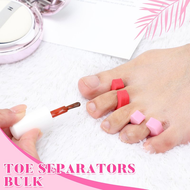 - The Delightful Blend of Practicality and Cosiness: made from soft, quality EVA foam, these toe separators for pedicure bulk provide a comfortable fit; Measuring approximately 1.1 x 1.1 x 0.28 inches/ 28 x 28 x 7 mm, they effortlessly snug into place between toes, providing the allowance for nail polish application and other pedicure procedures