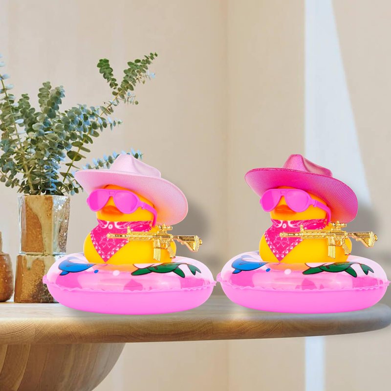 Cowboy Duck Car Dashboard Decorations Accessories with Mini Holographic Cowboy Hat Swim Ring Scarf Sunglasses and Special Prop