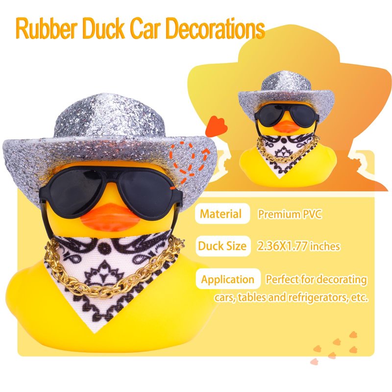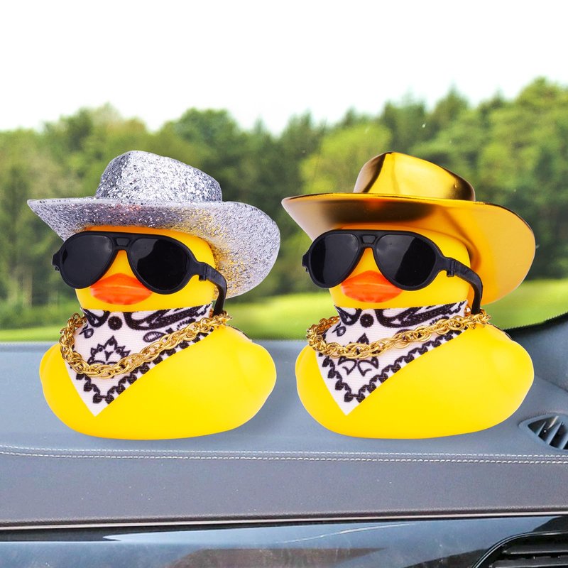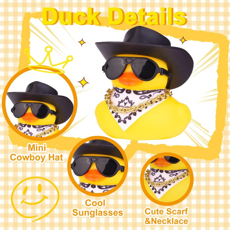 MuMyer Rubber Duck Car Ornaments with Mini Cowboy Hat Scarf Necklace and Sunglasses