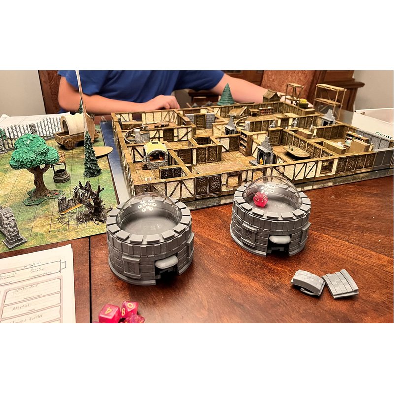 MunnyGrubbers - Castle Dice Popper V2 - Dice Jail - for TTRPG & Board Games - (Random 7PCS D20 Dice Set Included) - Dice Roller - Dice Tower - Dice Holder - Dungeons and Dragons - DND - (Gray)