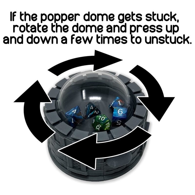 - This dice popper keeps your precious dice sets clean and from rolling off table. It also allows you to roll dice without a table top.