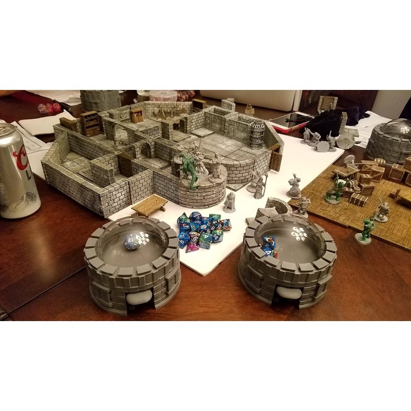 This RPG table top style castle dice popper can roll up to 5 dice at a time and hold up to 21 dices in its storage compartment. Its design is convenient for quick loading and unloading of dice. Useful for keeping dice clean and for multi rolling scenarios, this dice popper is a great addition to your collection or as a gift to a fellow party member.