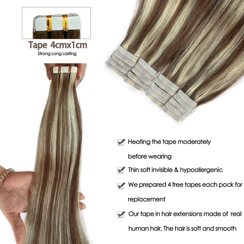 - 【High Quality Hair Extensions】-- 9A grade, 100% remy human hair extensions, salon quality, soft like your own natural hair. Our tape hair extensions can last 2-3 months with good care.