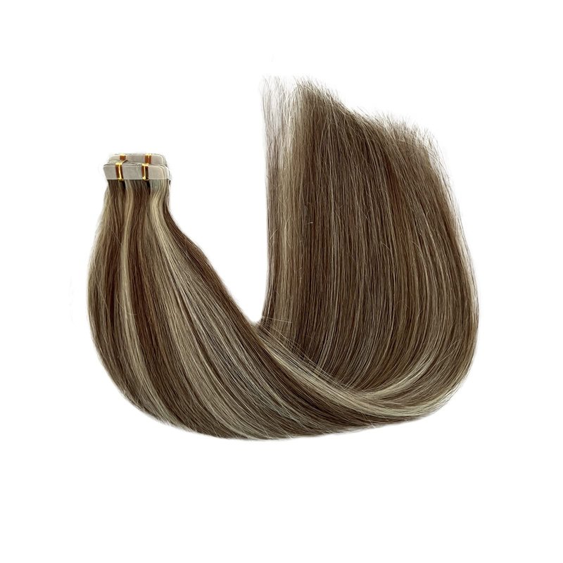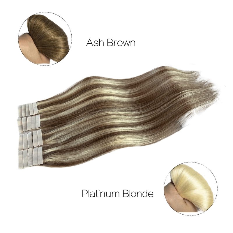 Munx Hair Extensions Tape in Human Hair Ash Brown with Platinum Blonde Seamless Double Sided Invisible Tape Ins for Black Women Human Hair 20 Inch 20pcs 50g/Pack