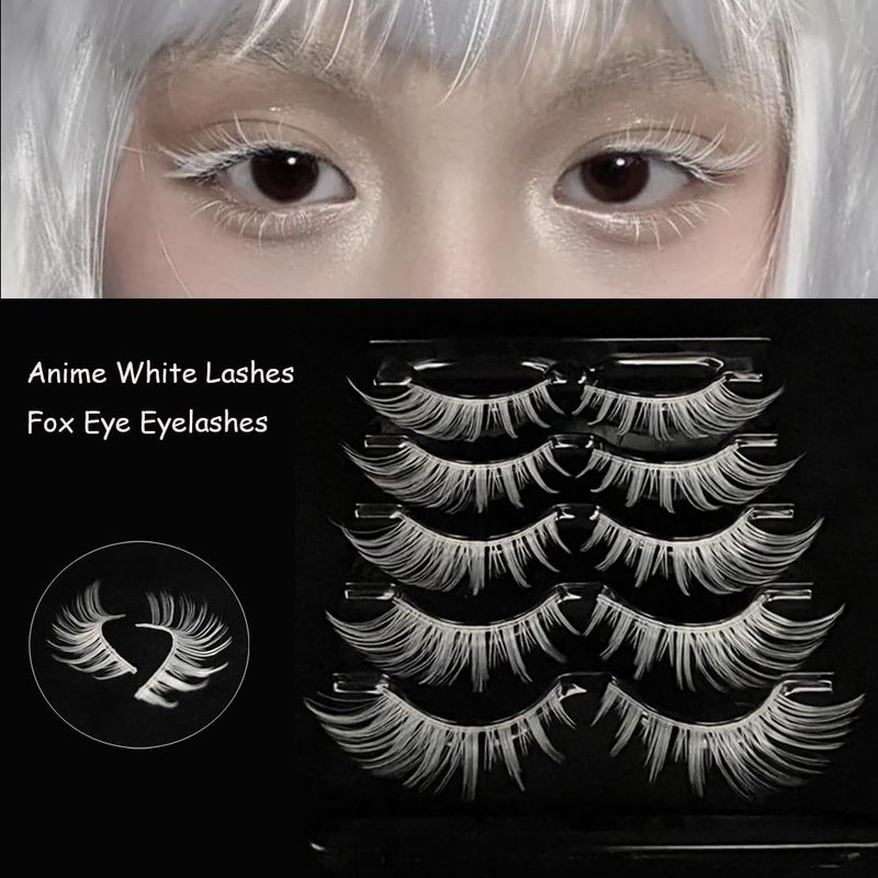 MUQIU37 White Lashes Fairy Eyelashes Cat Eye Wispy Spiky False Eyelashes Cosplay Manga Lashes Halloween Easter Lashes Natural Anime White Fake Lashes Fox Eye Long Volume Fake Eyelashes (MQ15-5 Pairs)