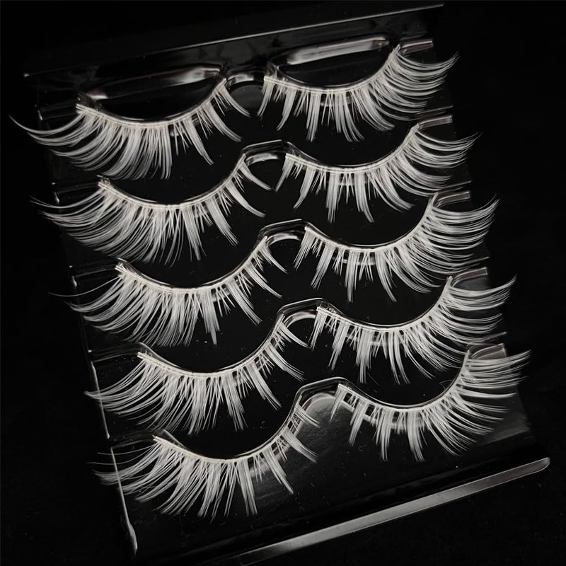 - The package contains: 5 pairs (pack) of white eyelashes .