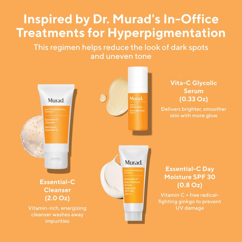 Murad Brighten & Even Tone with Vitamin C - 3-Piece Trial Kit ($79 Value) - Vitamin & Antioxidant Rich Treatment - Ess-C Cleanser 2Fl Oz, Vita-C Glycolic Serum 0.33Fl Oz, Ess-C Day SPF 30 0.8Fl Oz