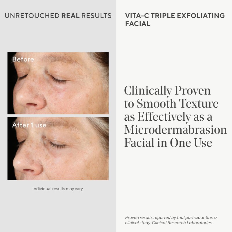 Triple exfoliating facial clinically proven to smooth texture like a microdermabrasion facial—in just one use. Vitamin C helps brighten for more even skin tone and healthier-looking skin.