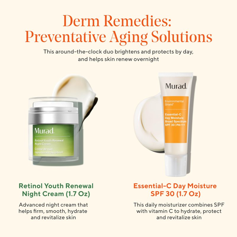 Murad Preventative Aging Solutions Value Set - 2-Piece Full Size Set ($158 Value) - Anti-Aging Skincare Set - Essential-C Day Moisture SPF 30 1.7Fl Oz, Retinol Youth Renewal Night Cream 1.7Fl Oz