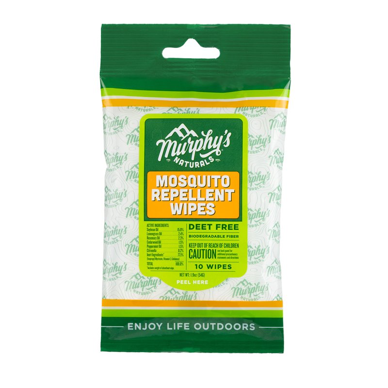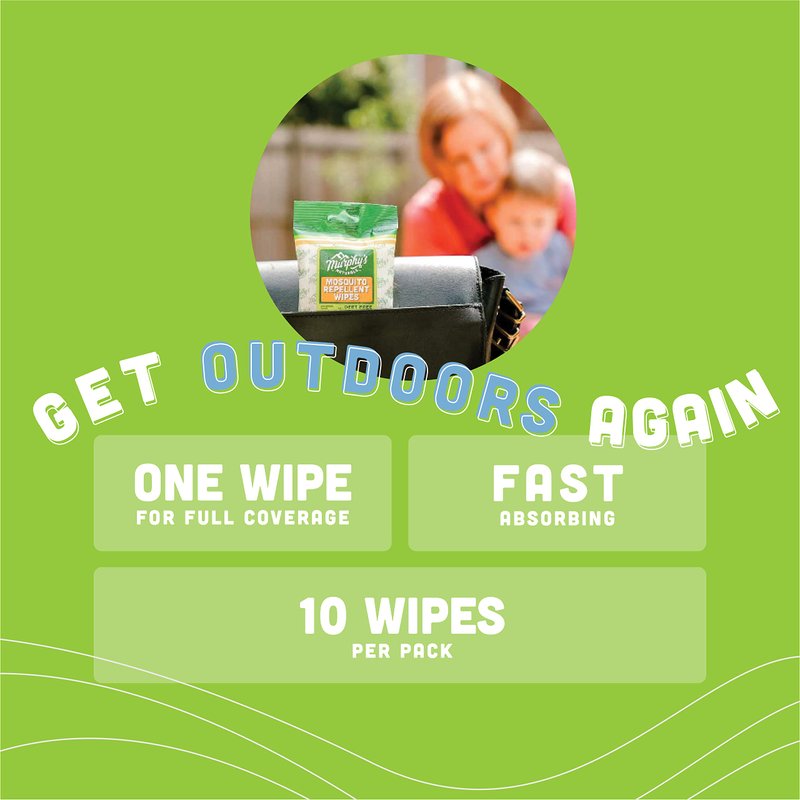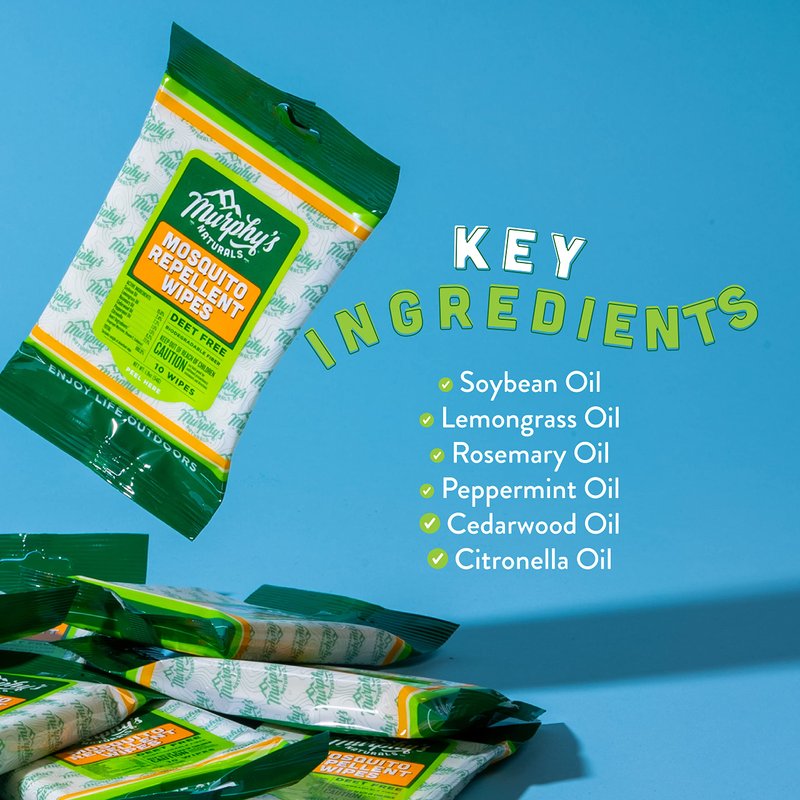 Murphy's Naturals Mosquito Repellent Wipes | DEET Free | Made with Plant Based Essential Oils | Includes Citronella + Lemongrass | Easy to Use | Great for Family | Travel Sized | 10 Wipes
