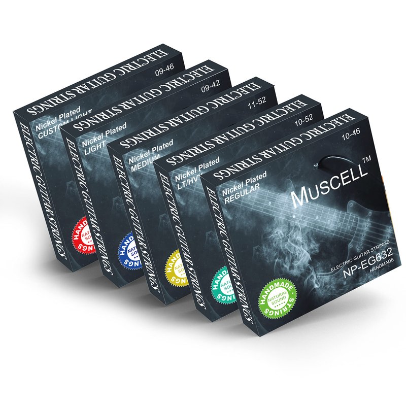 MUSCELL Electric Guitar Strings Handmade Nickel Plated Hex Steel Colorful Ball End-3 Packs-6 String-Regular 10-46